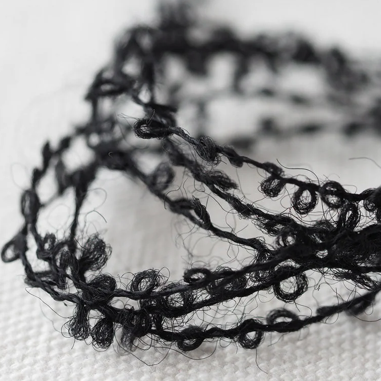 서로 다른 섬유로 만든 블랙 루프 얀입니다.탄탄한 질감으로 루프가 잘 살아 있어, 단독으로 사용하거나 다른 실과 함께 사용해도 형태가 쉽게 눌리지 않습니다.